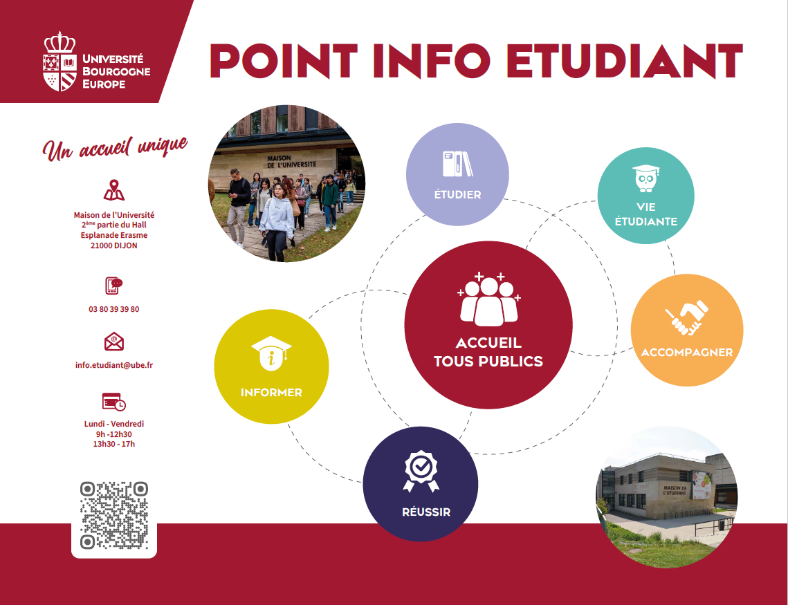 - Le Point Info Étudiant, guichet unique pour les étudiants, est là pour orienter les demandes et les besoins à l’université.